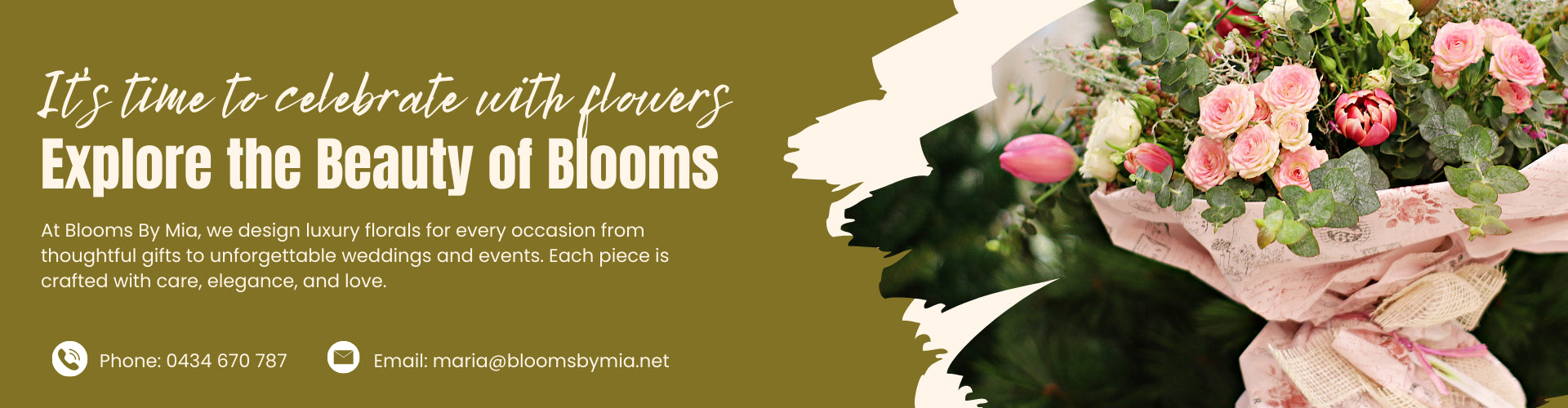 At Blooms By Mia, we believe every moment deserves flowers that tell a story. From birthdays and anniversaries to weddings, events, and heartfelt tributes, our team creates bespoke floral arrangements that reflect your style. With options ranging from modern bouquets to full event styling, we ensure your blooms are as meaningful as the moments they celebrate.